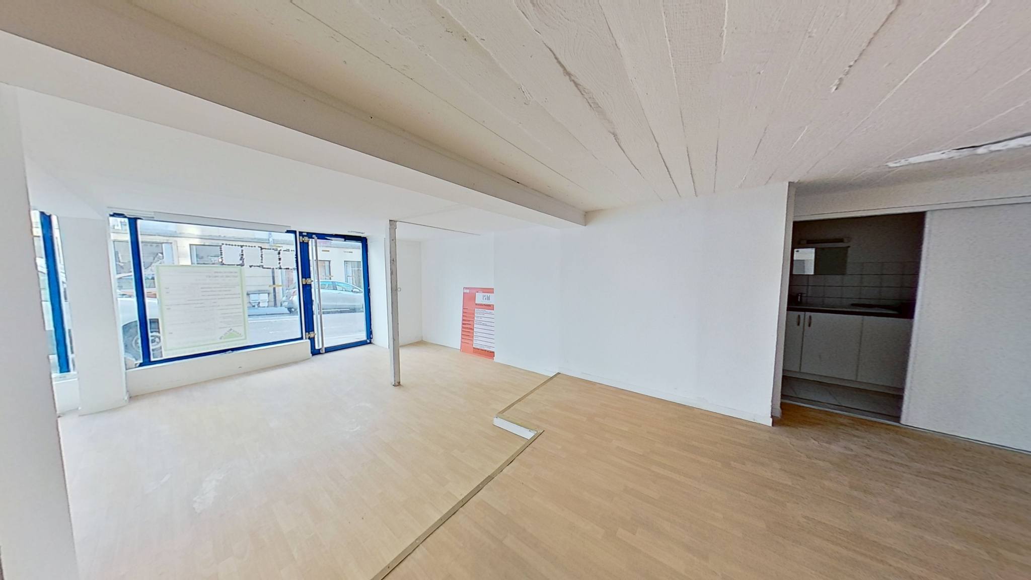 Il se compose d'un espace d'accueil d'environ 40 m², d'un deuxième espace à aménager de 21 m², d'une réserve d'environ 25 m², d'un espace cuisine et des sanitaires. Ce local commercial offre un agencement fonctionnel idéal pour développer votre activité.