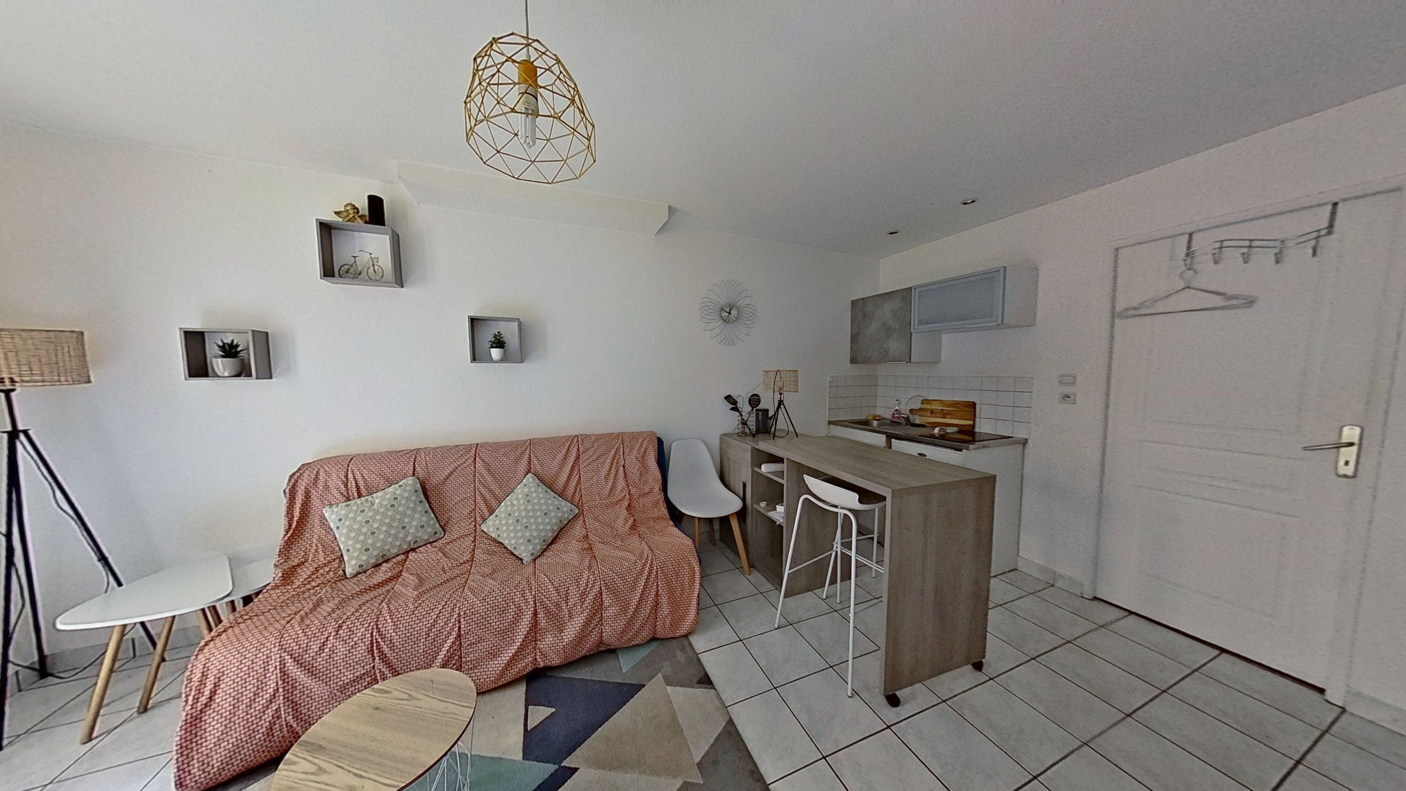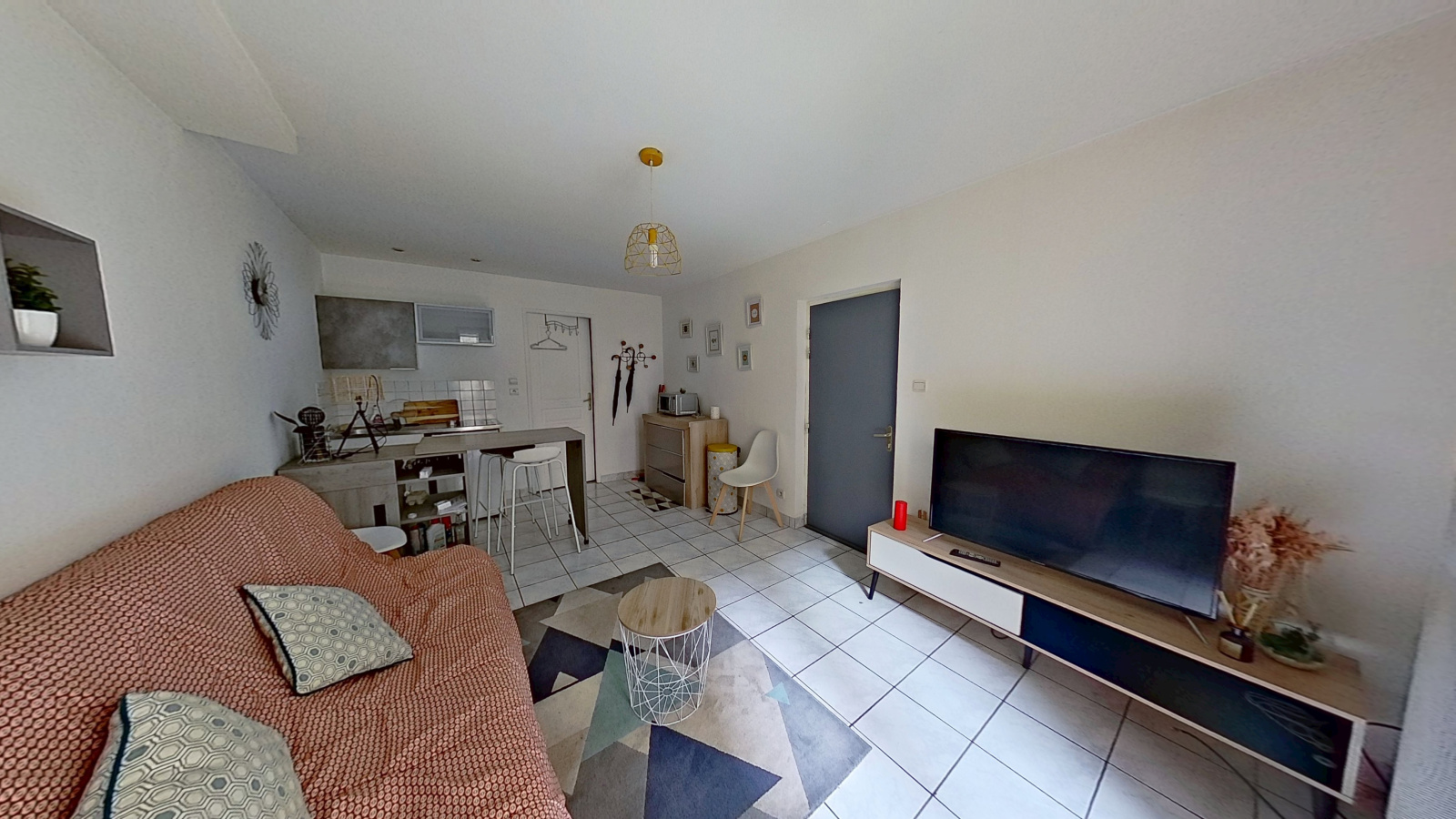 Le studio est entièrement meublé et bien décoré, prêt à accueillir son futur locataire.